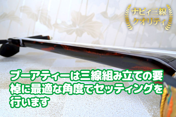 この角度が良くない為に「弦が浮き上がりすぎて弾きにくい」「逆に低すぎてノイズが多い」といったトラブルの三線が数多く販売されています。